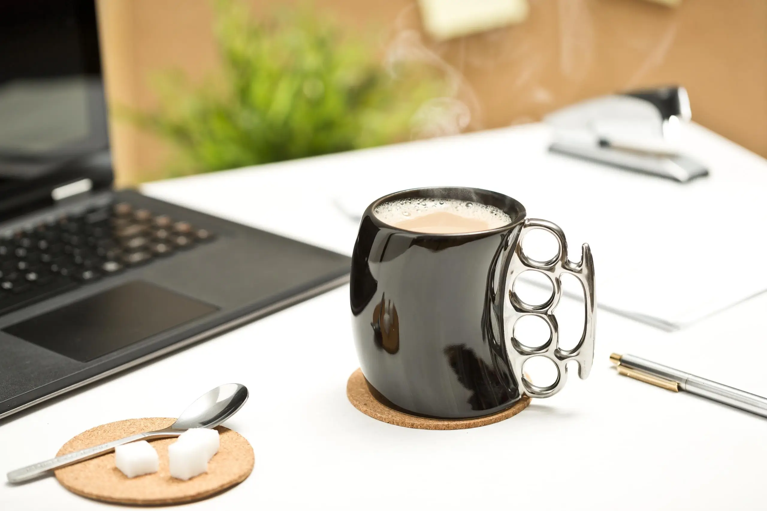 ➡️ Dla posiadaczy wyjątkowo czarnego charakteru! Ten czarny kubek twardziela to ekstra gadżet dla prawdziwych hardcorów, który robi wrażenie swoją masywną posturą i charakterystycznym uchwytem w formie kastetu.