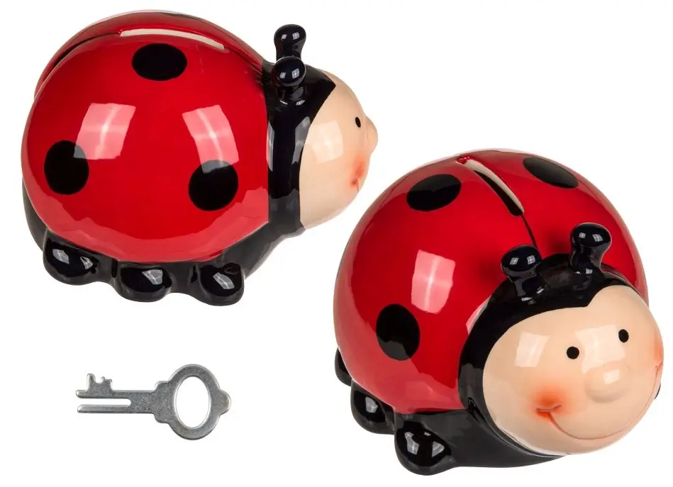 ➡️ Ta ceramiczna skarbonka w kształcie biedronki to idealny gadżet dla każdej dziewczynki, która uwielbia te urocze zwierzątka. Dzięki praktycznemu zamkowi na spodzie można ją wielokrotnie otwierać, co pozwala na bezpieczne i wygodne oszczędzanie. Pakowana w estetyczny kartonik, świetnie sprawdzi się jako prezent na każdą okazję.
