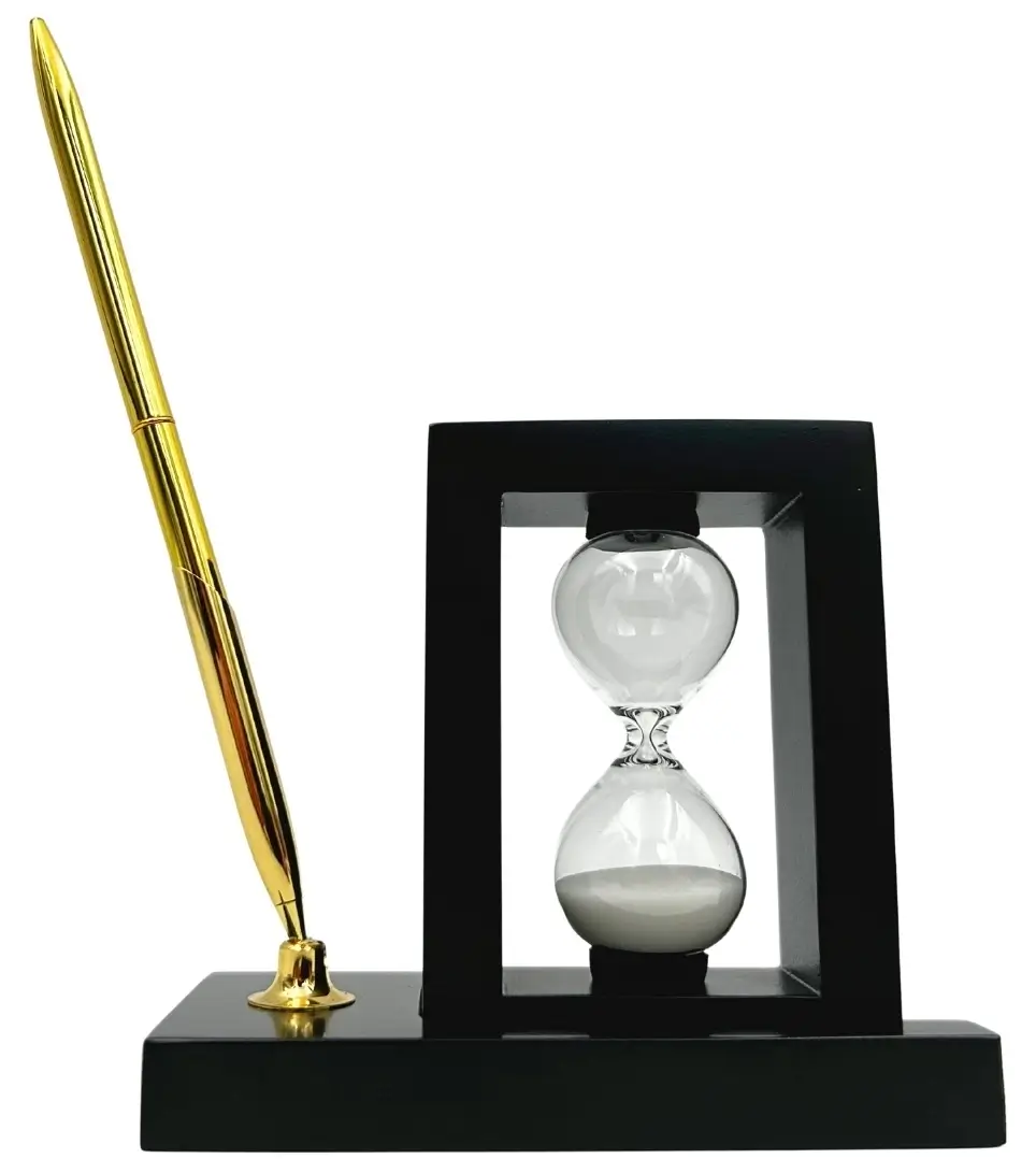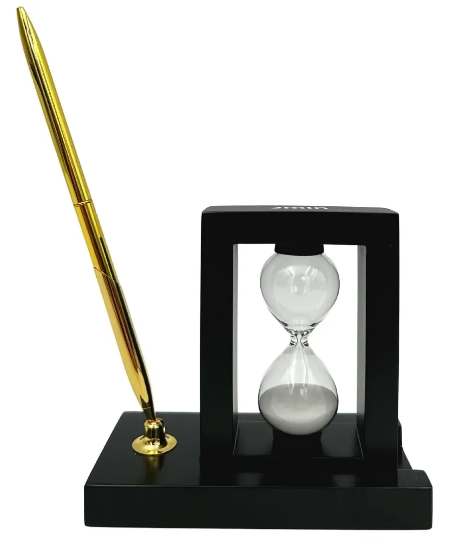 ➡️ Praktyczny design i funkcjonalność – klepsydra może odmierzać czas krótkich zadań lub przerw, a stojak utrzymuje porządek na biurku. Solidna konstrukcja z płyty MDF i elegancki długopis w zestawie czynią produkt zarówno dekoracyjnym, jak i użytkowym.