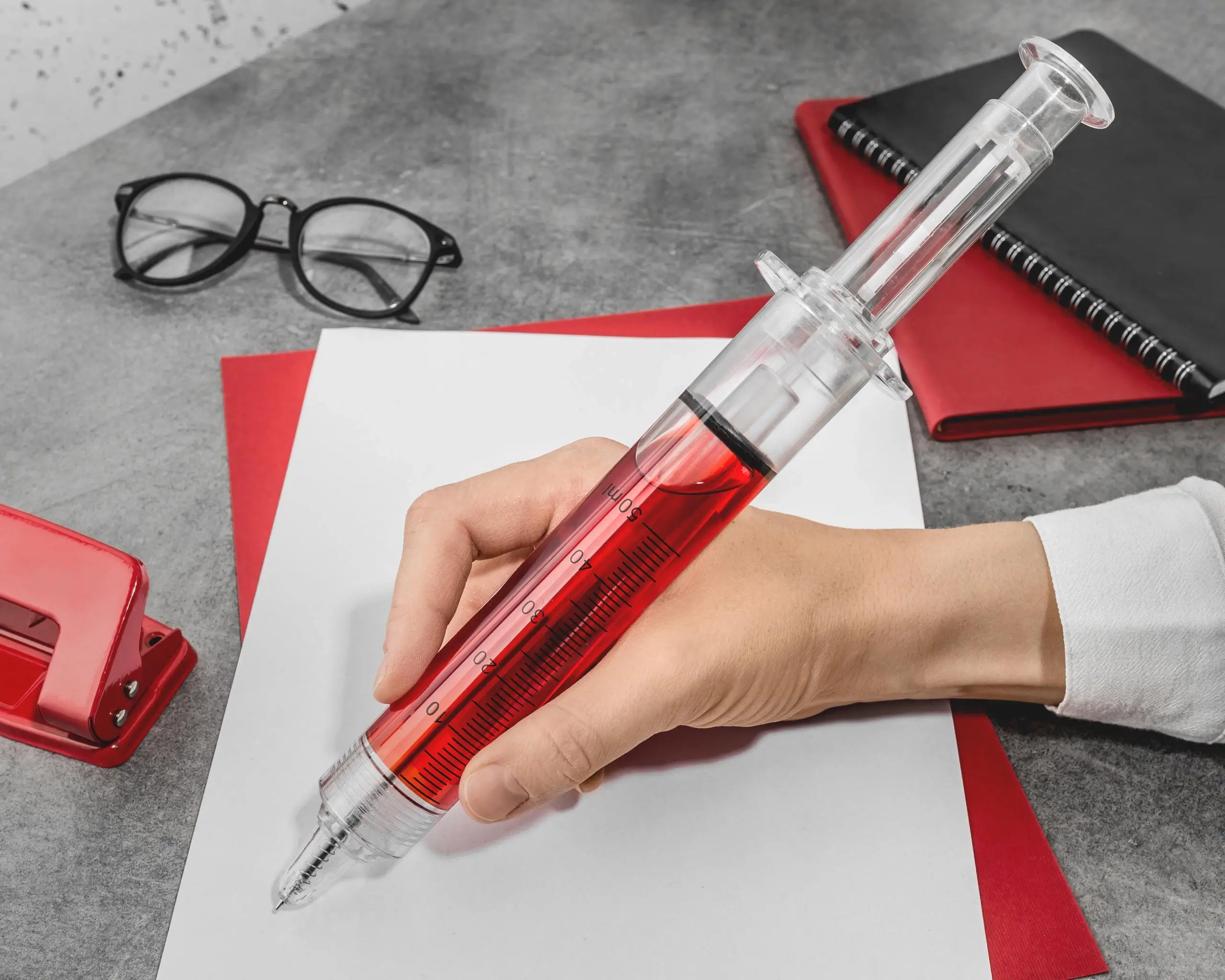 ➡️ Chcesz wprowadzić humor i zaskoczenie do codziennych sytuacji? Długopis strzykawa XXL to gadżet, który wygląda jak prawdziwa strzykawka wypełniona krwią, a jednocześnie pozwala pisać normalnie. Idealny do żartów w szkole, pracy czy podczas podróży – reakcje znajomych gwarantowane!