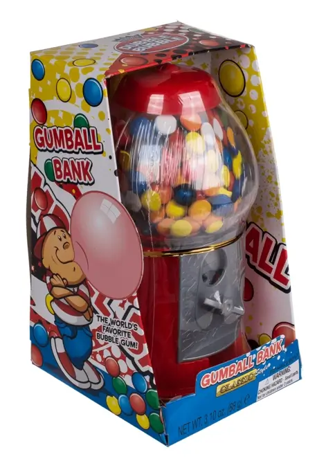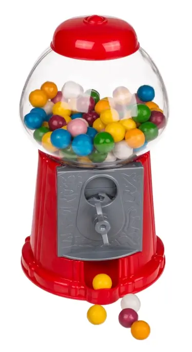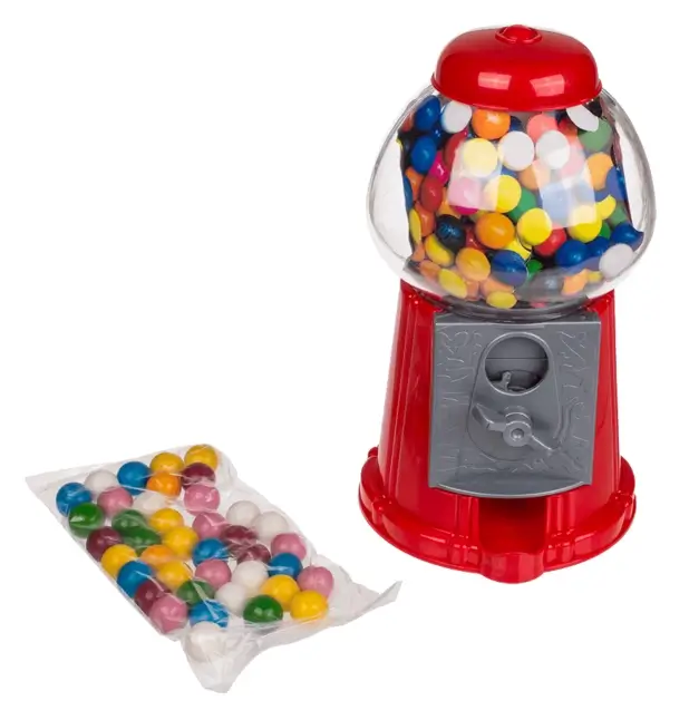 ➡️ Ten pokaźnych rozmiarów dystrybutor gum to idealny sposób, by cieszyć się słodkościami w domu lub na przyjęciu. Wystarczy przekręcić pokrętło, aby wydobyć gumy, landrynki lub inne cukierki – praktyczny i zabawny gadżet, który przyciąga wzrok każdego dziecka.