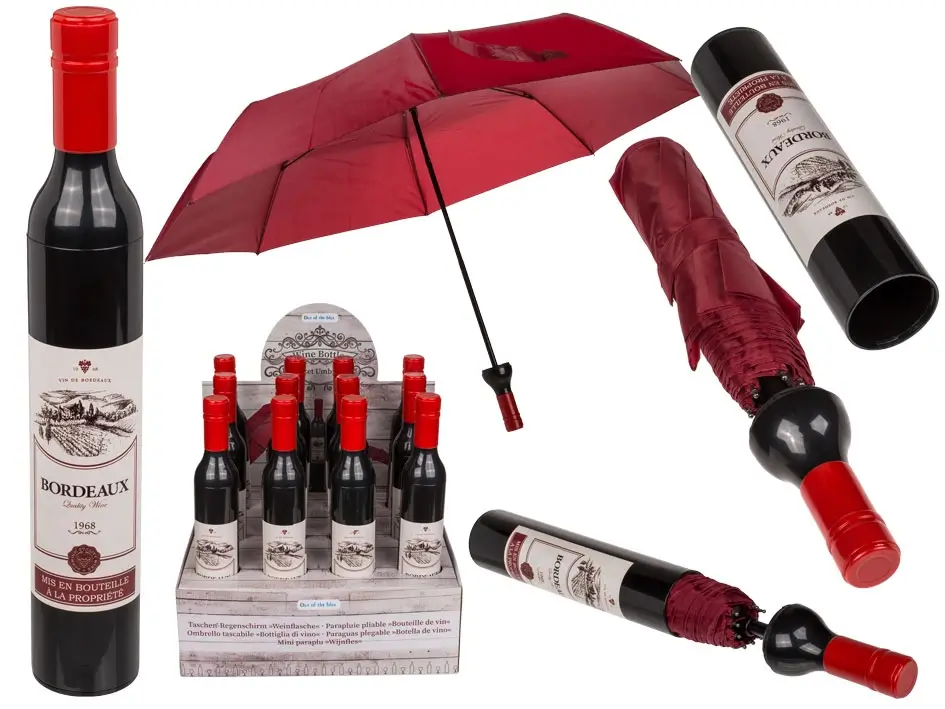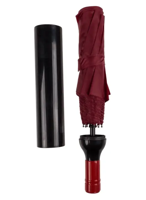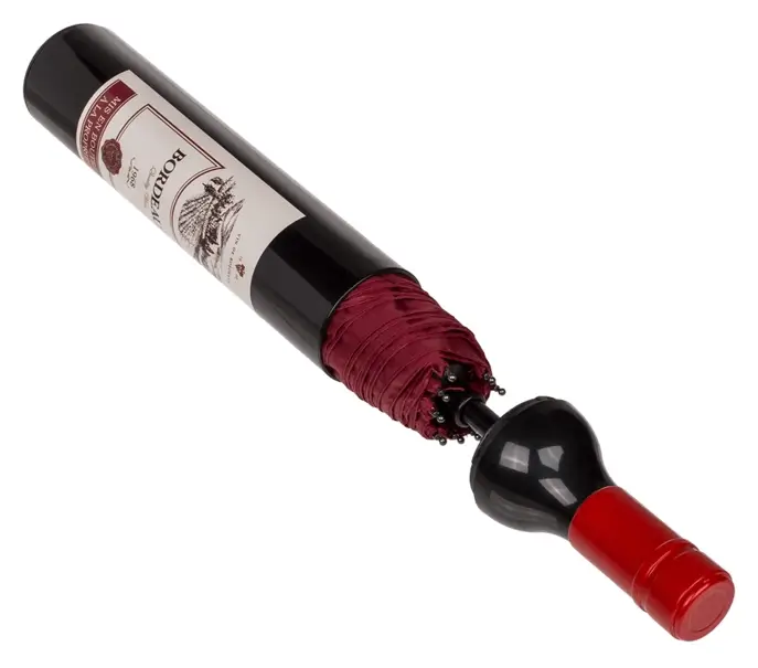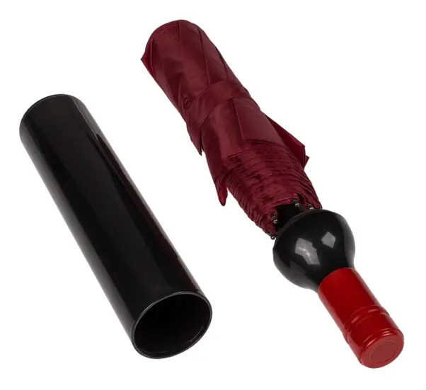 ➡️ Elegancja w niepogodę. Ta parasolka w kolorze bordowym nie tylko chroni przed deszczem, ale także wyróżnia się nietypowym designem w etui w kształcie butelki wina. Idealna do torebki, teczki czy plecaka – zawsze pod ręką i gotowa do użycia.