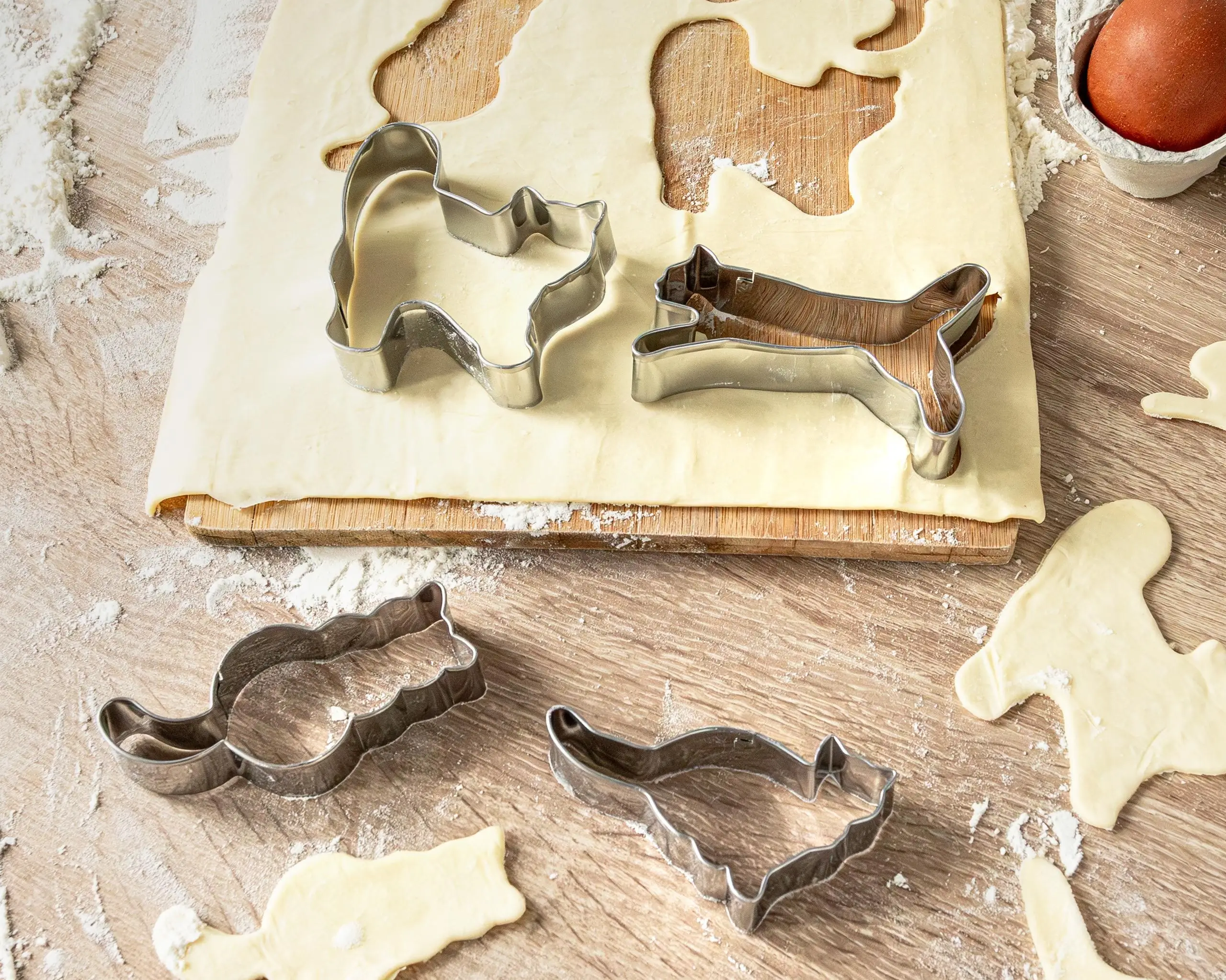 ➡️ Foremki wykonane są z wysokiej jakości metalu z zaokrąglonymi krawędziami dla bezpieczeństwa. Proste w użyciu – wystarczy wykroić ciastka i upiec w piekarniku. Zestaw jest łatwy do utrzymania w czystości, nadaje się do mycia w zmywarce i zapakowany w ekologiczne opakowanie.