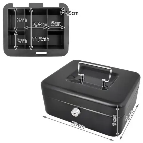 ➡️ Kasetka wykonana jest z wytrzymałego metalu, posiada solidne ściany oraz drzwi zamykane na klucz. Dzięki zdejmowanej wkładce na monety zyskujesz dodatkowy, ukryty schowek na większe i cenniejsze przedmioty. Lekka konstrukcja i składana rączka sprawiają, że sejf jest łatwy do przenoszenia i wygodny w codziennym użytkowaniu.