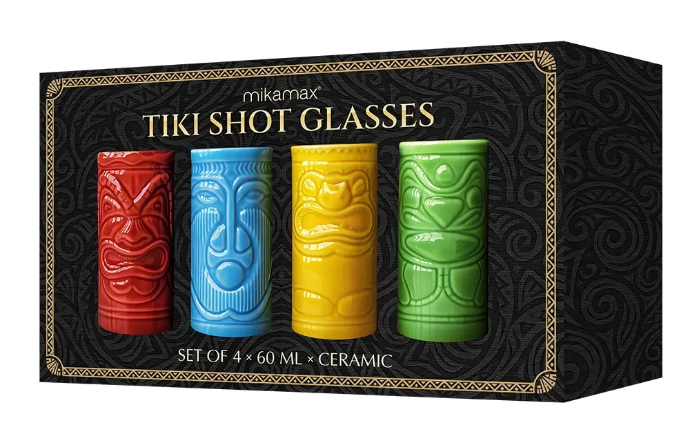 ➡️ Dodaj swojej imprezie egzotycznego charakteru dzięki ceramicznym kieliszkom Tiki! To wyjątkowy zestaw, który przyciąga uwagę kolorowym designem i oryginalnymi wzorami, tworząc niepowtarzalny klimat rodem z tropikalnych barów. Idealne na spotkania z przyjaciółmi, imprezy i jako nietuzinkowy prezent.