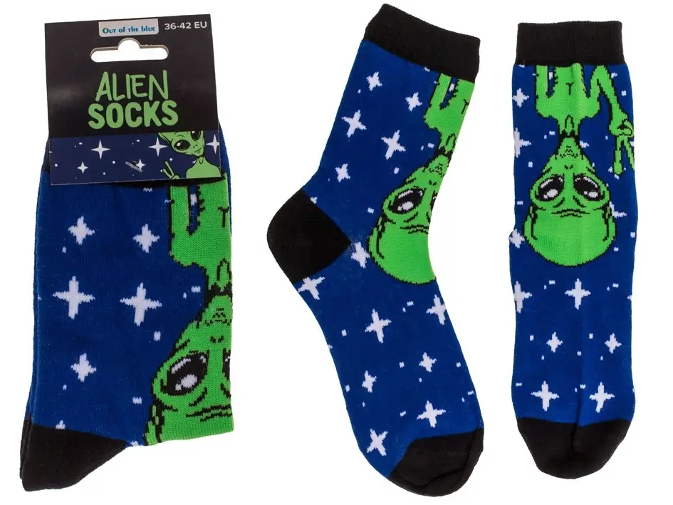 ➡️ Jeśli czasem czujesz, że nie do końca pasujesz do tej planety – te skarpetki są właśnie dla Ciebie! Motyw sympatycznego kosmity na miękkiej, bawełnianej tkaninie to sposób, by pokazać dystans, poczucie humoru i oryginalny styl.