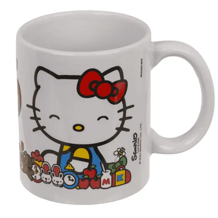 ➡️ Uroczy kubek z motywem Hello Kitty i jej przyjaciół sprawi, że każdy poranek zacznie się z uśmiechem! Kolorowy nadruk przedstawia kultową postać Sanrio w towarzystwie jej ulubionych rzeczy, a delikatne barwy i klasyczny design czynią kubek idealnym dodatkiem do kuchni i biura. To gadżet, który łączy codzienną funkcjonalność z nutą słodkiego humoru.