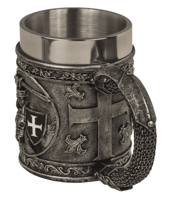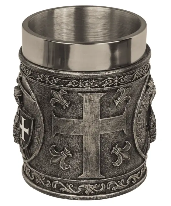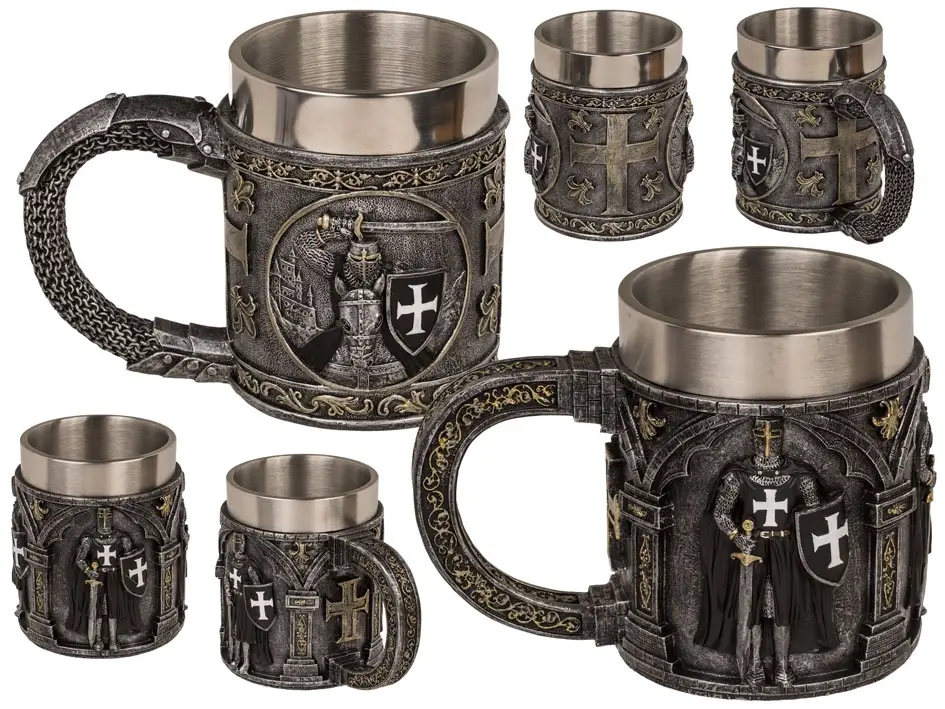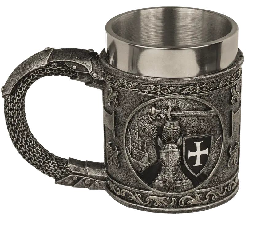 ➡️ Wykonany z solidnego polyresinu, z wnętrzem ze stali nierdzewnej, łączy efektowny wygląd z wygodą użytkowania. To idealny wybór dla osób, które cenią mocne, wyraziste dekoracje i klimat rycerskich opowieści.
