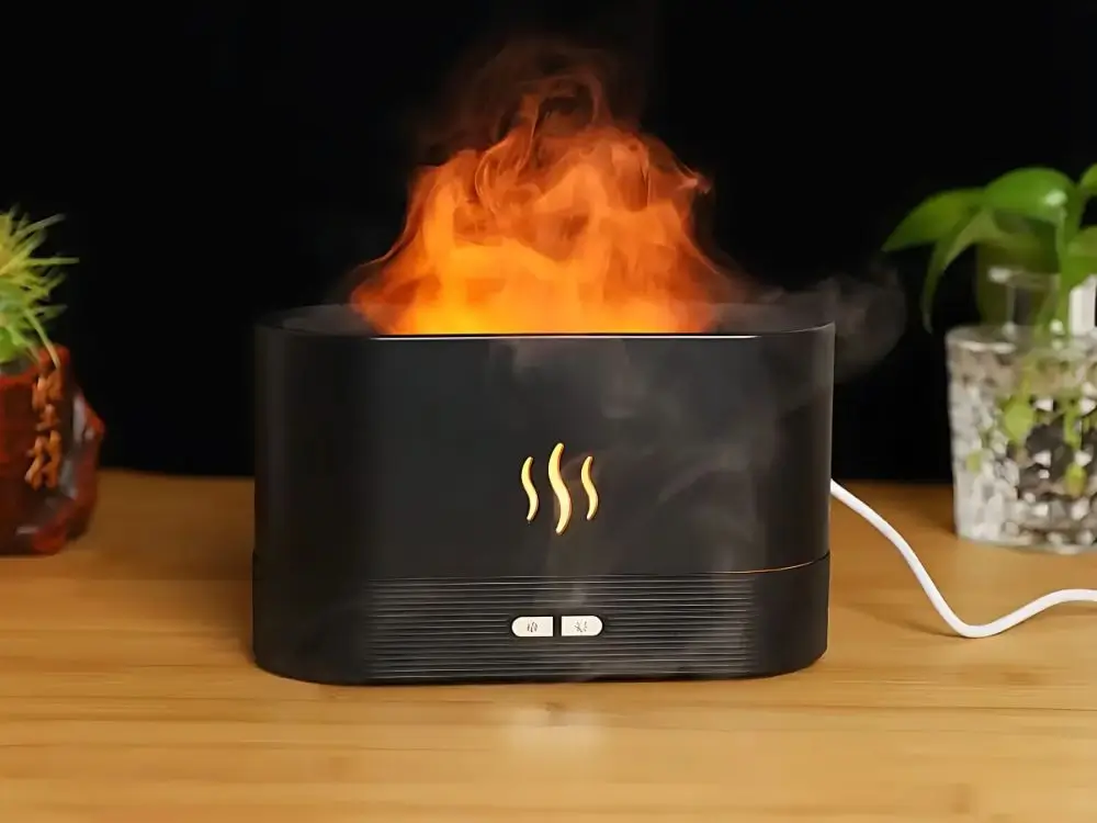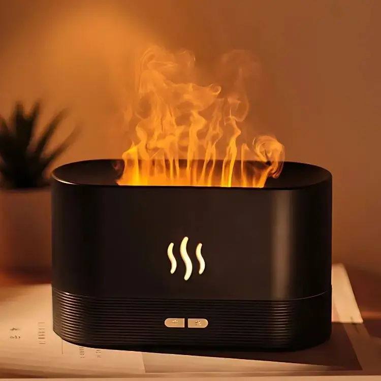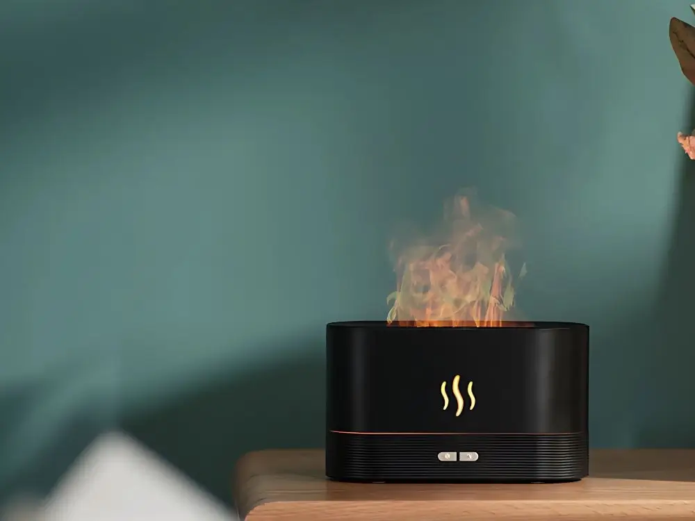 ➡️ Ten nowoczesny nawilżacz powietrza z efektem ognia tworzy w pomieszczeniu przytulny, relaksujący klimat niczym przy prawdziwym kominku. Kolorowa mgiełka imitująca płomień działa uspokajająco, pomaga się wyciszyć i buduje wyjątkową atmosferę do odpoczynku, medytacji lub wieczornego relaksu.