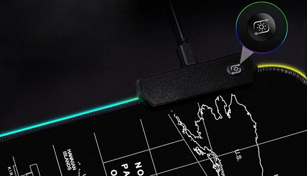 ➡️ Podkładka wykonana jest z elastycznego, antypoślizgowego materiału, odpornego na wilgoć i zabrudzenia. Obszyte krawędzie zapewniają trwałość, a sterowanie trybami podświetlenia za pomocą przycisku USB pozwala szybko zmienić nastrój na biurku.