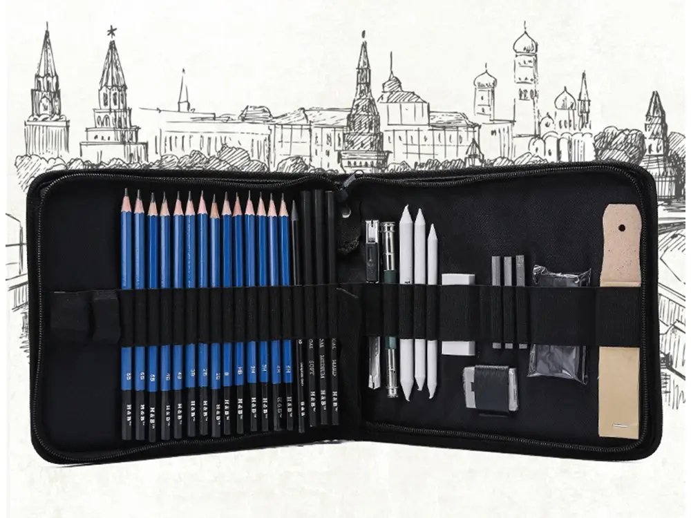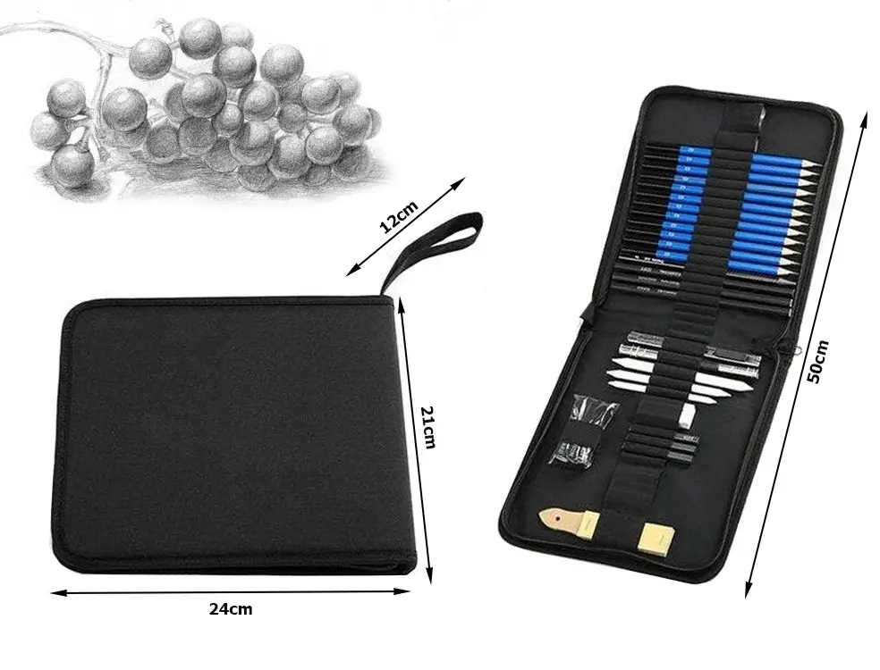 ➡️ Zestaw do szkicowania 32w1 to kompleksowy komplet dla artystów i pasjonatów rysunku, który łączy tradycję z funkcjonalnością. W jednym eleganckim etui znajdziesz wszystko, co potrzebne do tworzenia precyzyjnych szkiców, rozcierania cieni, eksperymentów z fakturą i tworzenia efektów artystycznych. Idealny na prezent dla początkujących i profesjonalistów, którzy cenią pełną kontrolę nad swoim warsztatem.