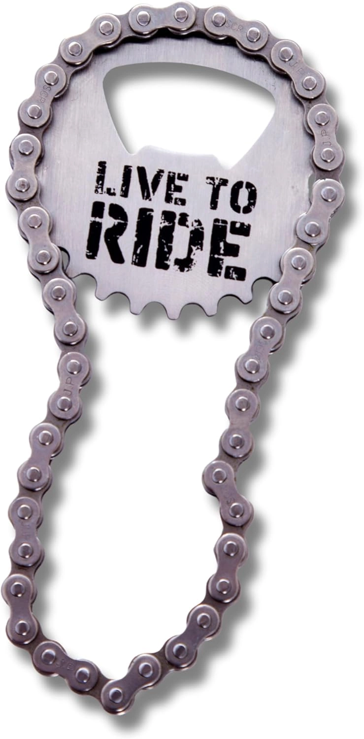 ➡️ Otwieraj butelki w stylu rowerowym! Ten wyjątkowy otwieracz w kształcie prawdziwego łańcucha rowerowego z napisem „Live to ride” to świetny gadżet dla każdego fana dwóch kółek i piwa.