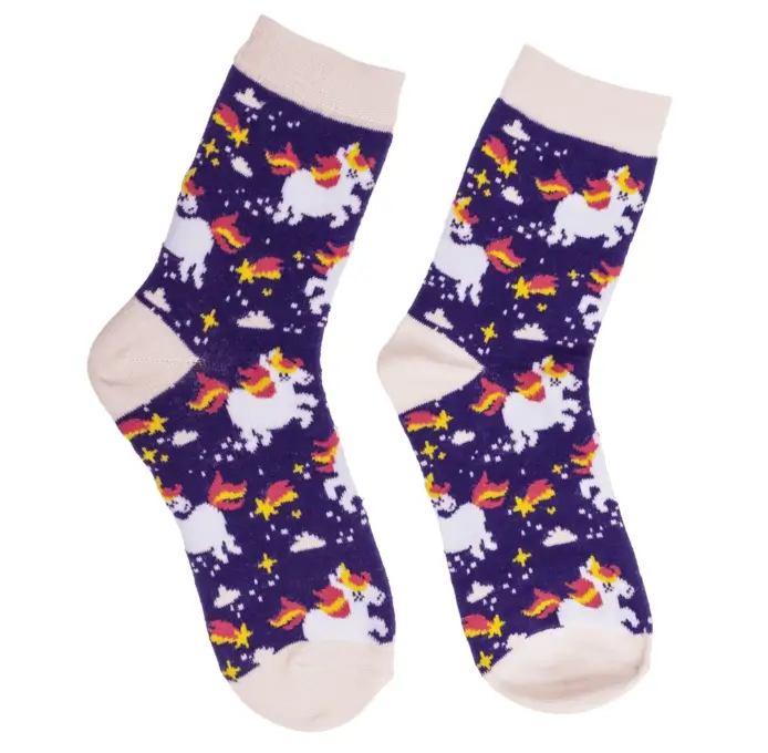 ➡️ Nie trzeba tęczy ani czarodziejskiej różdżki, żeby dodać codzienności odrobiny uroku. Skarpetki z motywem jednorożca w rozmiarze 36–42 to połączenie lekkości, kolorów i pozytywnej energii. Wykonane z miękkiej, przyjemnej w dotyku tkaniny, wprowadzają magiczny nastrój przy każdym kroku.