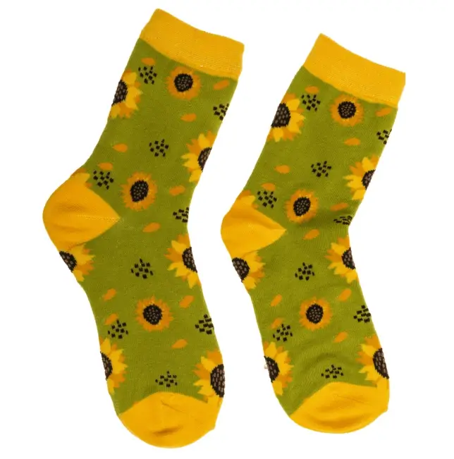 ➡️ Wprowadź słońce i pozytywną energię do codziennej stylizacji! Skarpetki w Słoneczniki z motywem żółtych kwiatów na zielonym tle to idealny dodatek dla osób, które lubią kolorowe i radosne akcenty.