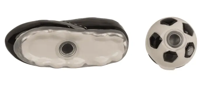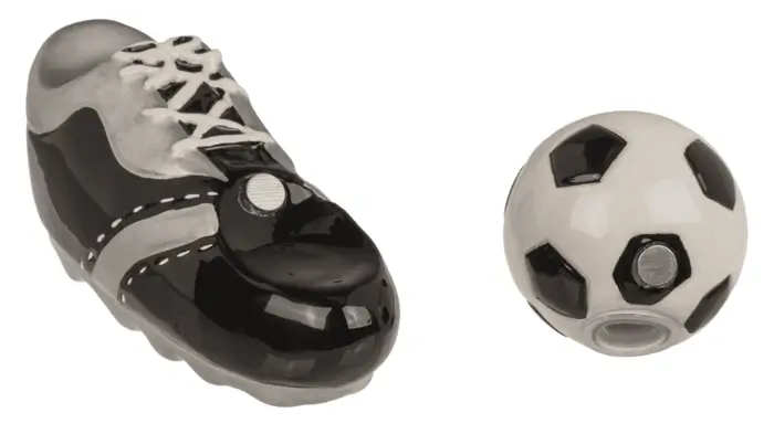➡️ Każdy posiłek może stać się małym meczem na Twoim stole! Zestaw solniczki i pieprzniczki w formie piłki i buta piłkarskiego wprowadza humor, sportową pasję i oryginalny akcent do kuchni. Dzięki magnesowi, elementy trzymają się razem, tworząc zabawną i niepowtarzalną dekorację.