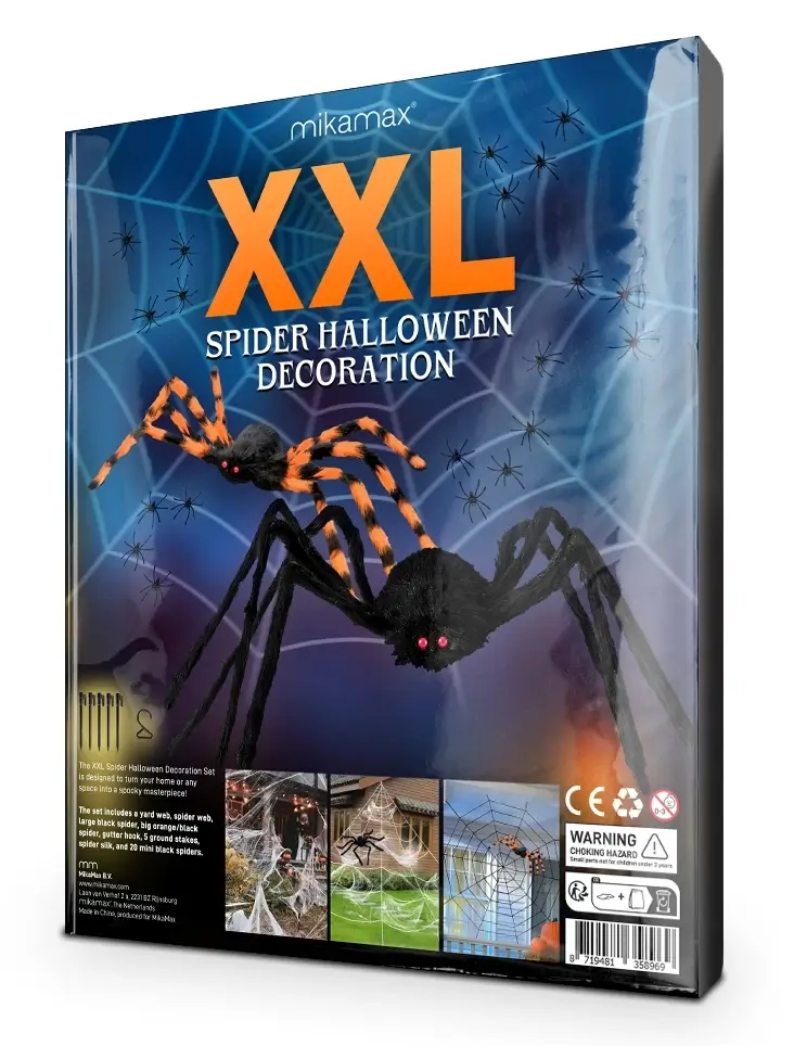 ➡️ Nadaj każdemu miejscu straszny klimat dzięki gigantycznej dekoracji Pająka XXL na Halloween! Łatwa w montażu i zawierająca wszystko, co potrzebne do stworzenia przerażającej aranżacji – od dużego pająka po pajęczynę i mini pająki.