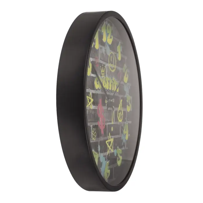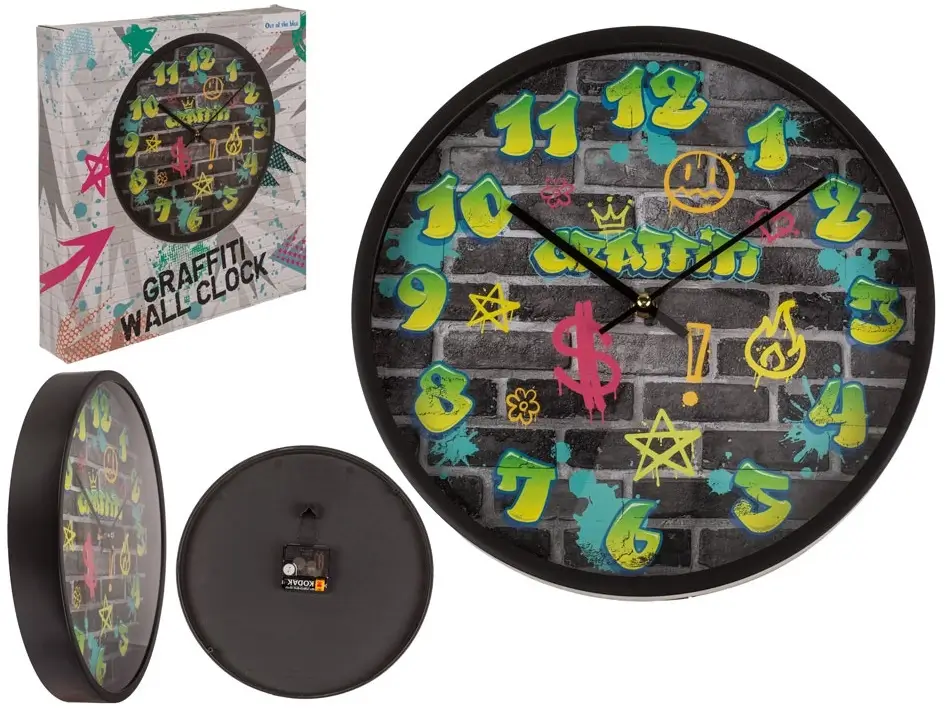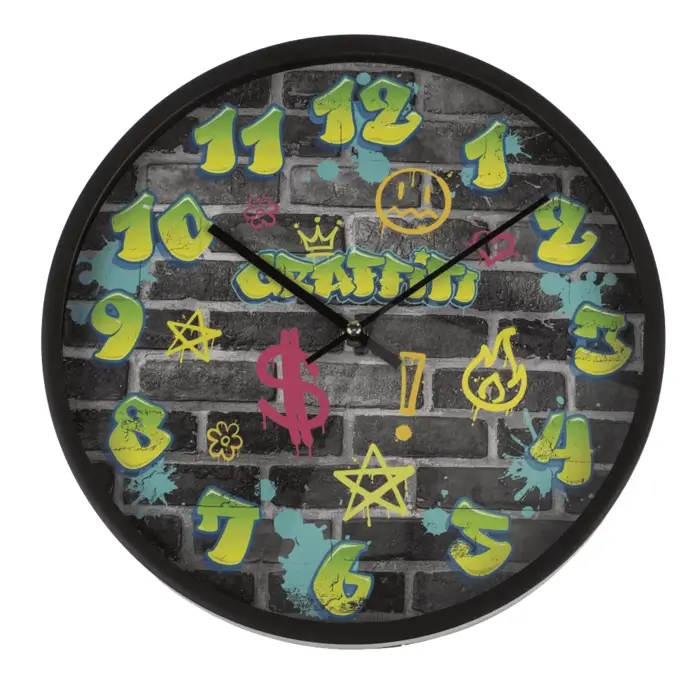 ➡️ Miejski klimat na ścianie. Ten zegar łączy funkcjonalność z artystycznym zacięciem, a dynamiczny motyw graffiti wprowadza do wnętrza energię, kolor i kreatywność. Idealny do pokoju nastolatka, studia, baru czy każdego wnętrza, które chce wyróżnić się stylem.