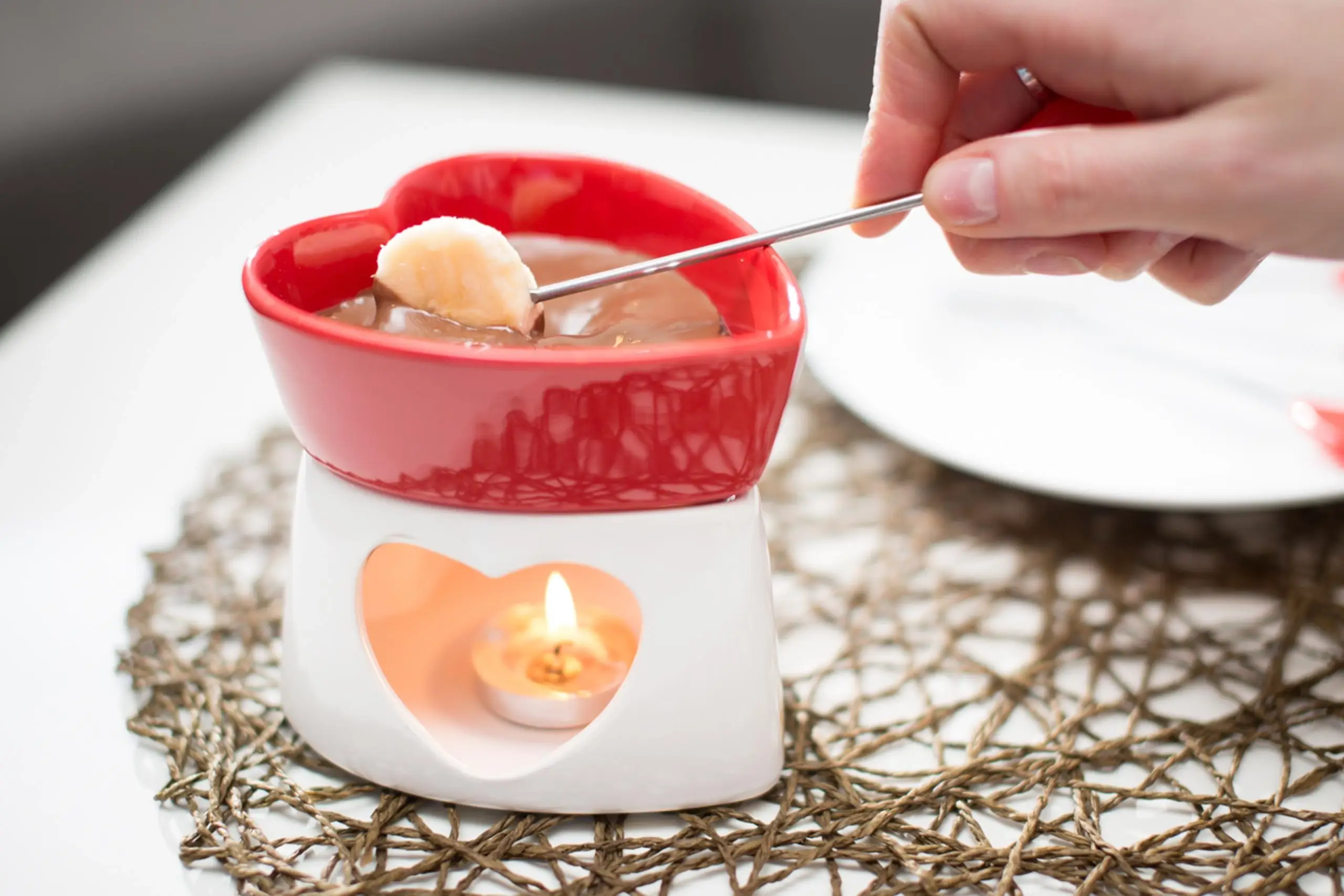➡️ Zestaw wykonany jest z wysokiej jakości porcelany, łatwej do utrzymania w czystości i bezpiecznej w użytkowaniu. Składa się z czerwonej miseczki, białej podstawki z ogrzewaczem oraz czterech widelczyków zakończonych serduszkami. Fondue sprawdzi się nie tylko podczas kolacji we dwoje, ale także na urodzinach dzieci, kinderbalach i rodzinnych spotkaniach, gdzie owoce w czekoladzie zawsze robią furorę.