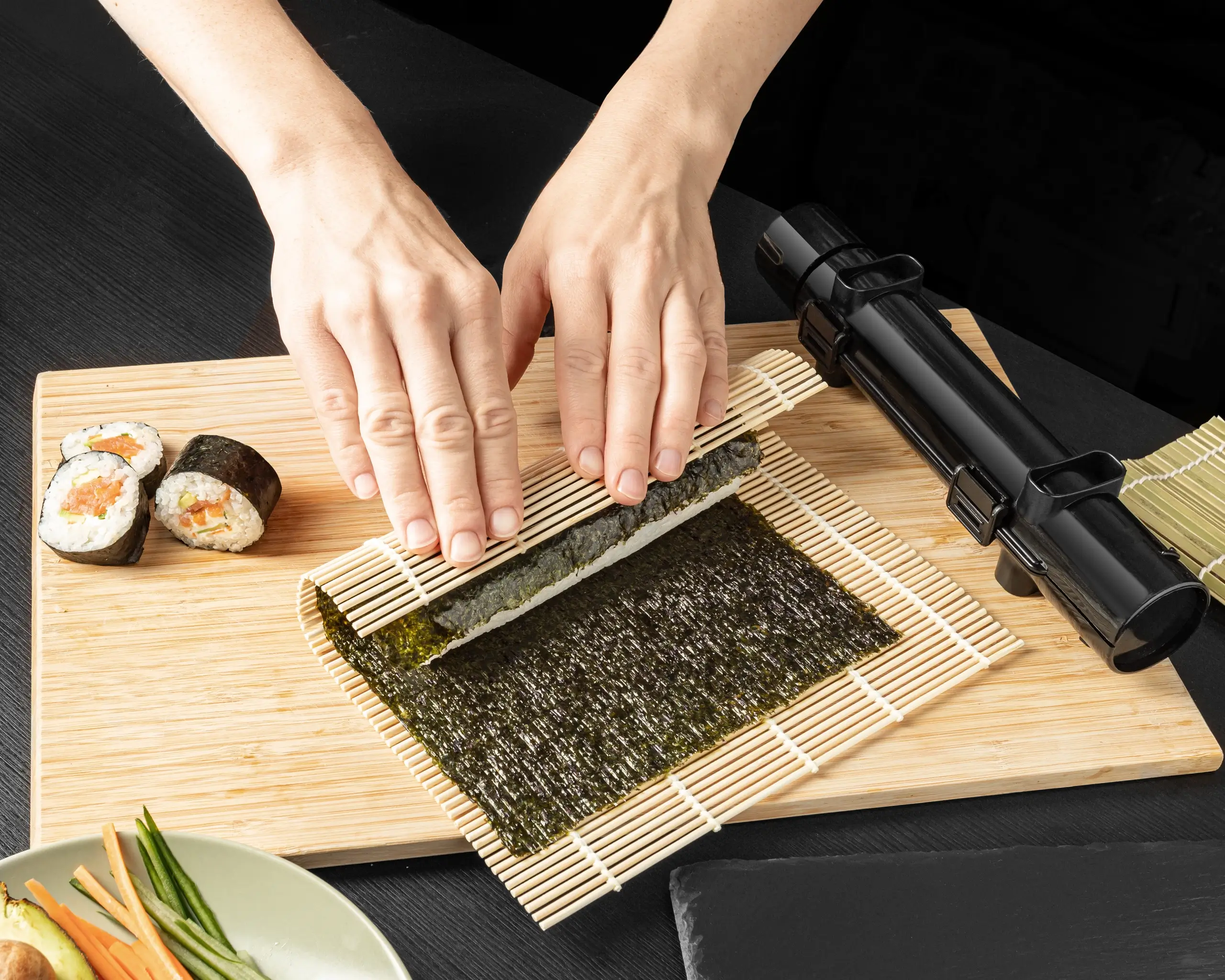 ➡️ Marzysz o tym, by przygotować prawdziwe, domowe sushi jak w najlepszej restauracji? Z zestawem Sushi Deluxe to możliwe! To nie tylko praktyczne narzędzie – to kulinarna przygoda, która pozwala tworzyć piękne, kolorowe i smakowite rolki, zachwycające zarówno podniebienie, jak i oczy. Eleganckie upominkowe opakowanie sprawia, że zestaw jest też idealnym prezentem dla miłośników kuchni azjatyckiej.